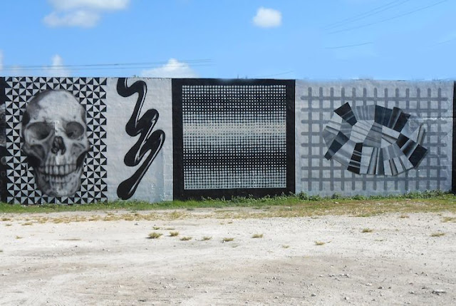 "Oculto Tequila Staves" was the type of mural using a skull, a repeated pattern,