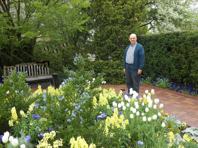 "Avalanche White" tulips and Pink Pansies along the path leading to the Enabling Garden.